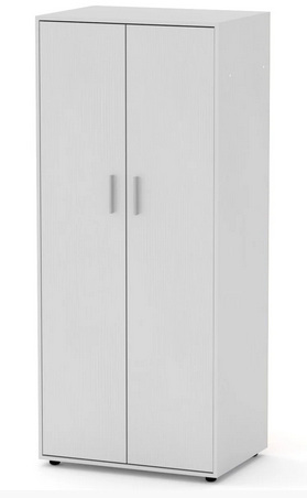 имеет две распашные двери, включает внутри - сверху полочку для головных уборов или для белья, а под ней штанга для вешалок с одеждой. Применим как самостоятельный элемент мебели в спальню или прихожей в доме или как один из шкафов для одежды в системе корпусной мебели для офиса.