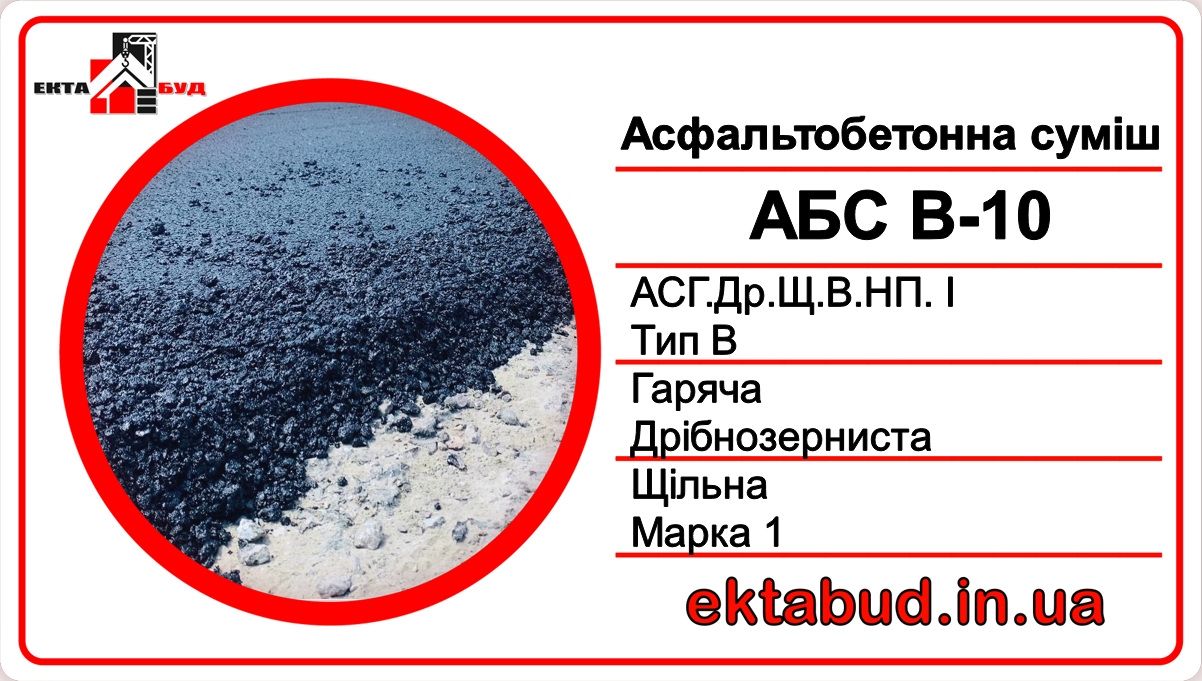 Асфальтобетон В-10 (АСГ.Др.Щ.В.НП.І) мелкозернистый, плотный, типа В, непрерывной гранулометрии, марки І