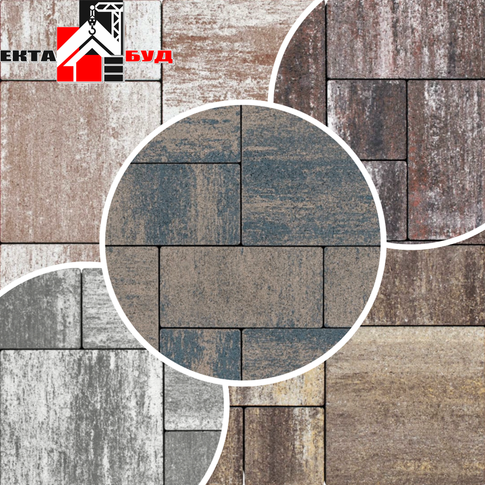 Описание Тротуарная плитка брусчатка Лайнстоун 30 Авеню 40 мм мультиформатная вибропрессованная Ковальская Колор Микс 4 см
