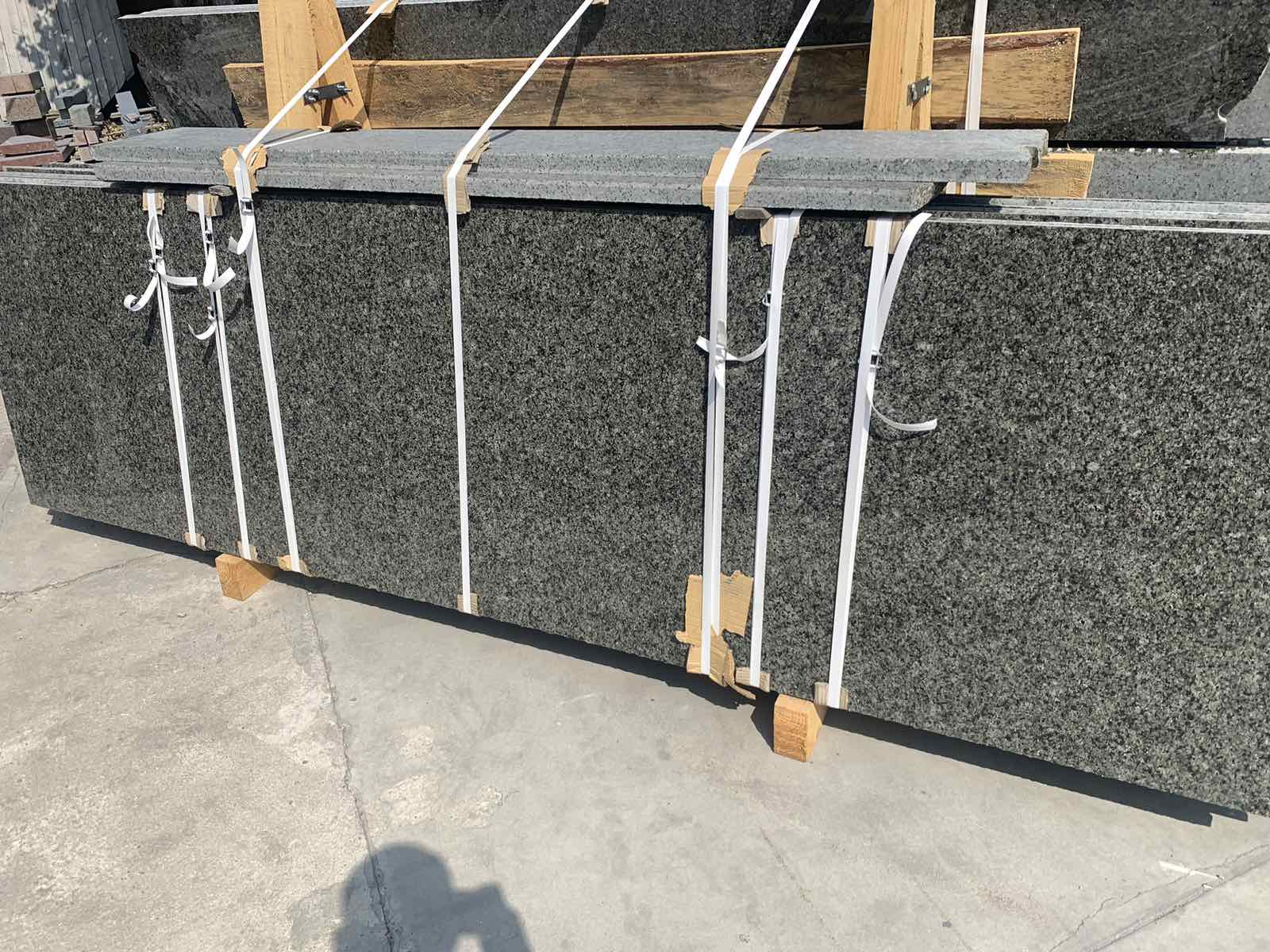 Плита из гранита - универсальный и экологически-чистый материал. Камень обладает зеленым цветом из оттенком серого.