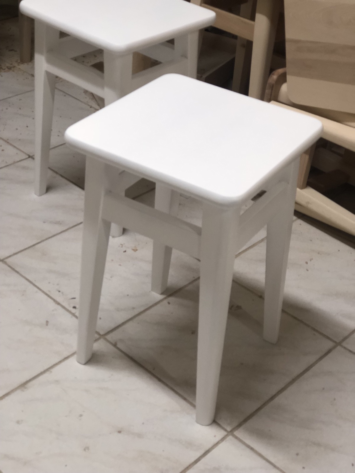 Табурет кухонный массив бука в белом цвете 450x300x300