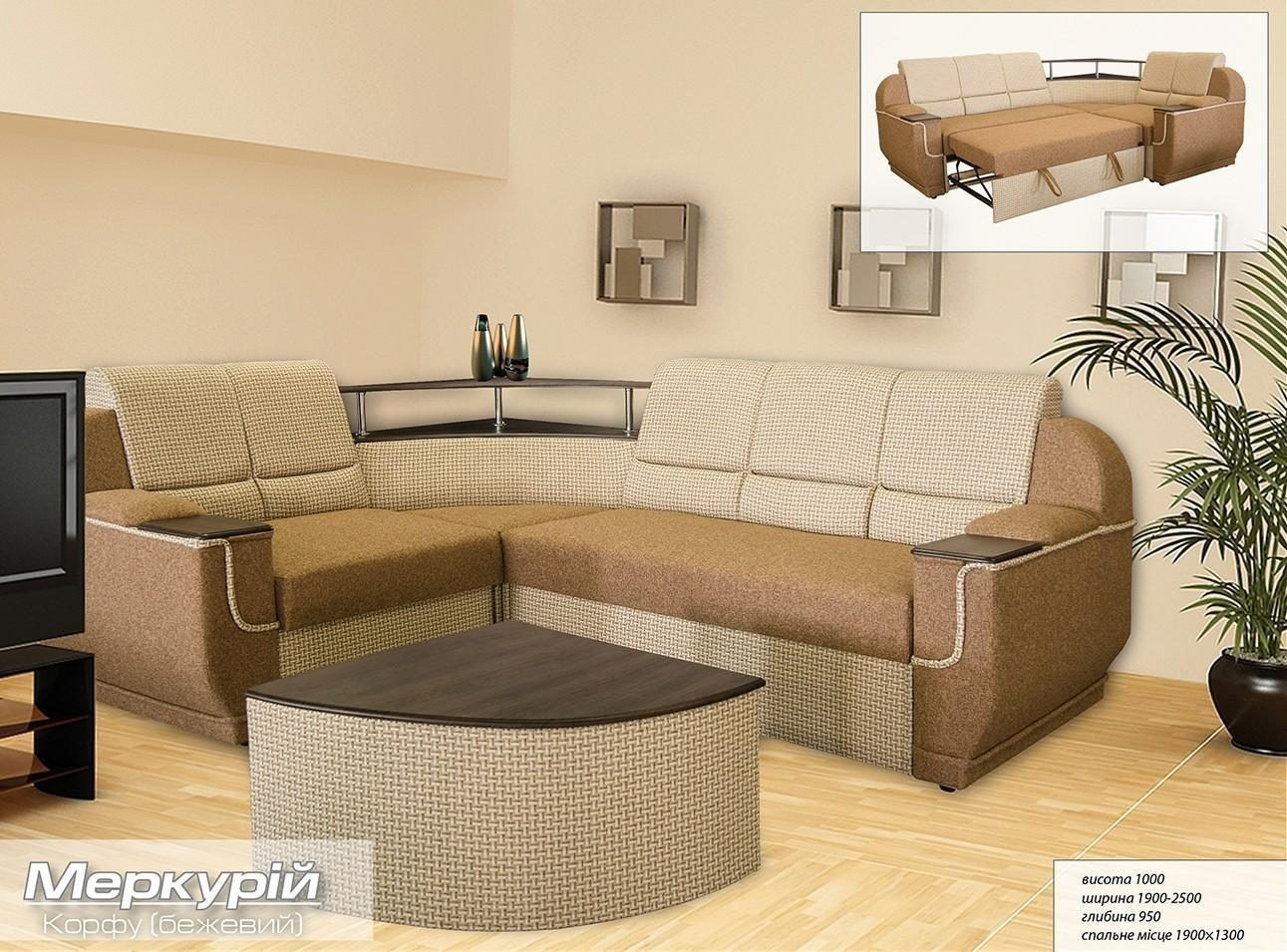 Характеристики товара Диван Мебель-Сервис Меркурий 1000х1900х2500х950 мм Корфу бежевый