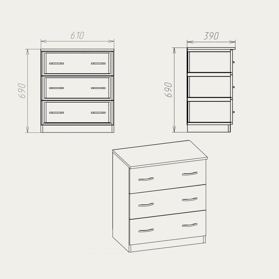 Характеристики товара Комод Компанит Комод-3А МДФ 610x690x390 венге