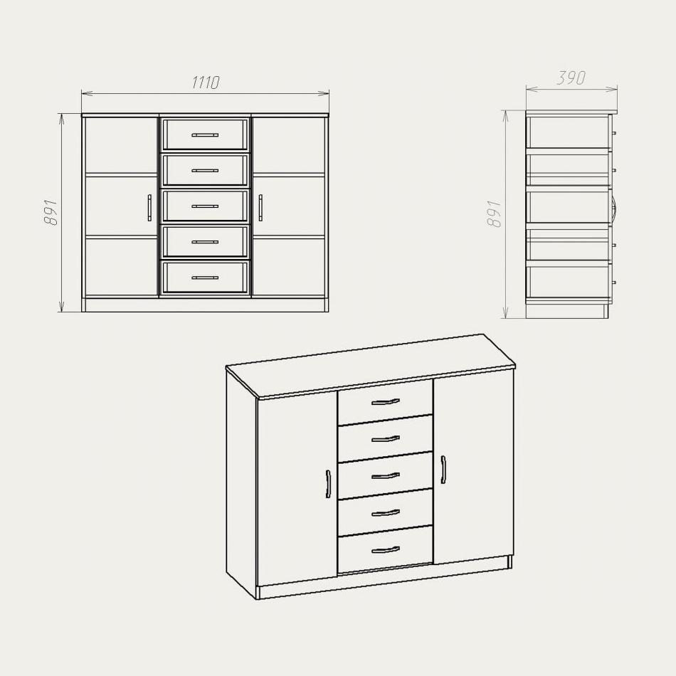 Характеристики товара Комод Компанит Комод-5+2 МДФ 1110x891x390 ольха