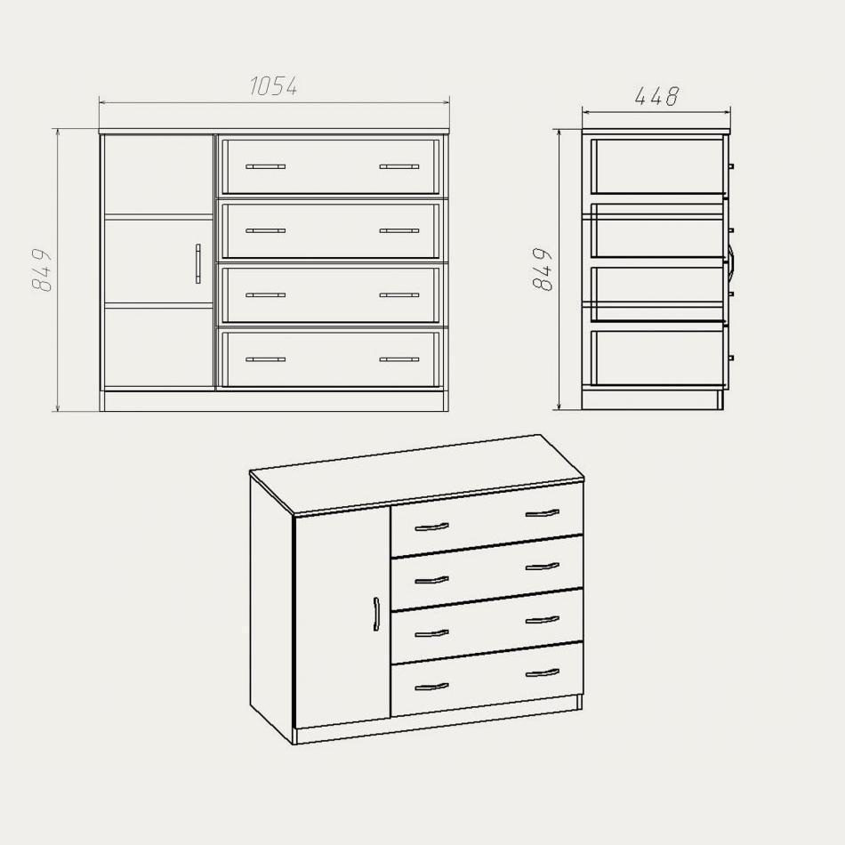 Характеристики товара Комод Компанит Комод-4+1Б МДФ 1054x849x448 орех