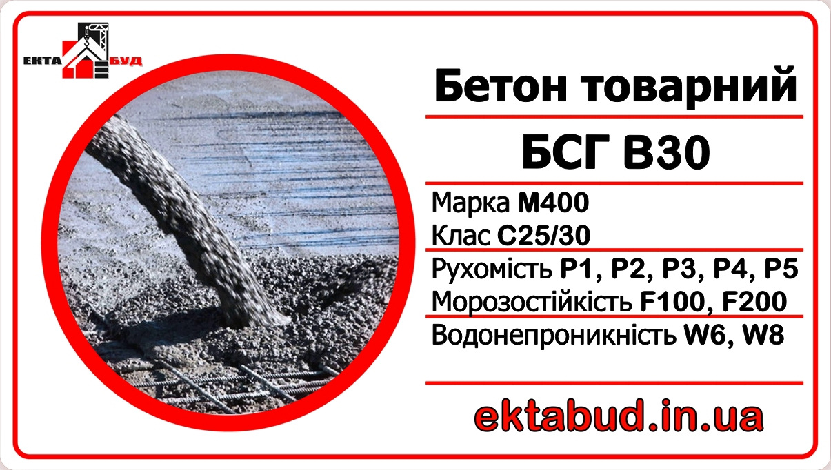 Бетон товарный БСГ В30 М400 С25/30 Р1 F200 W6