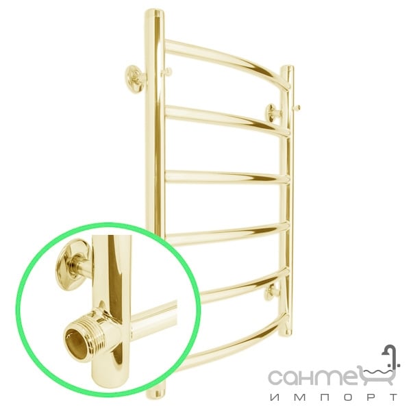 Описание Полотенцесушитель водяной с боковым подключением Laris Классик П6 500Х600 Б/П 1/2 МЦ 500 золото