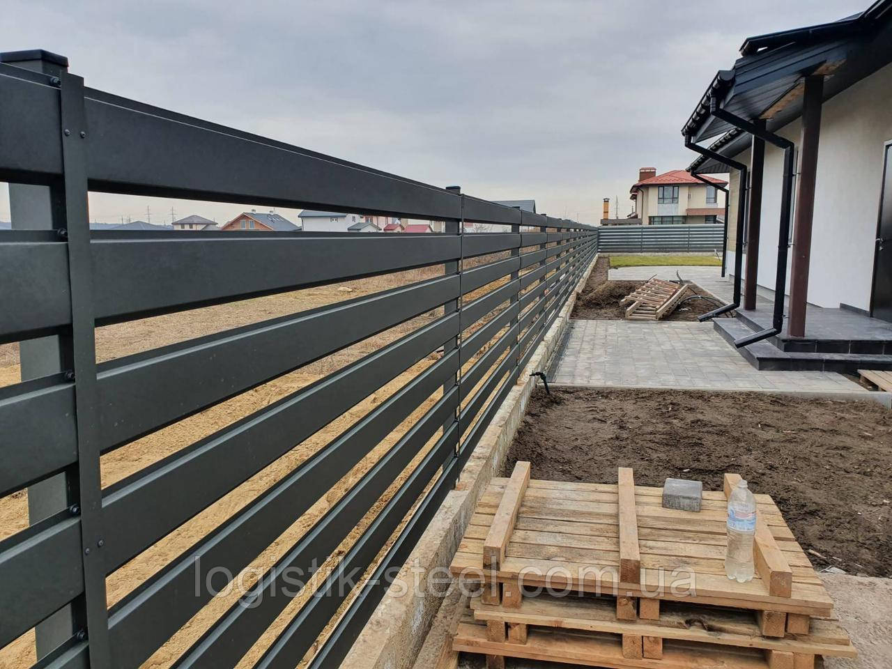 Забор Ранчо N тёмно-графитовый 7016 Ламель Горизонт шириной 190мм полная зашивка