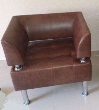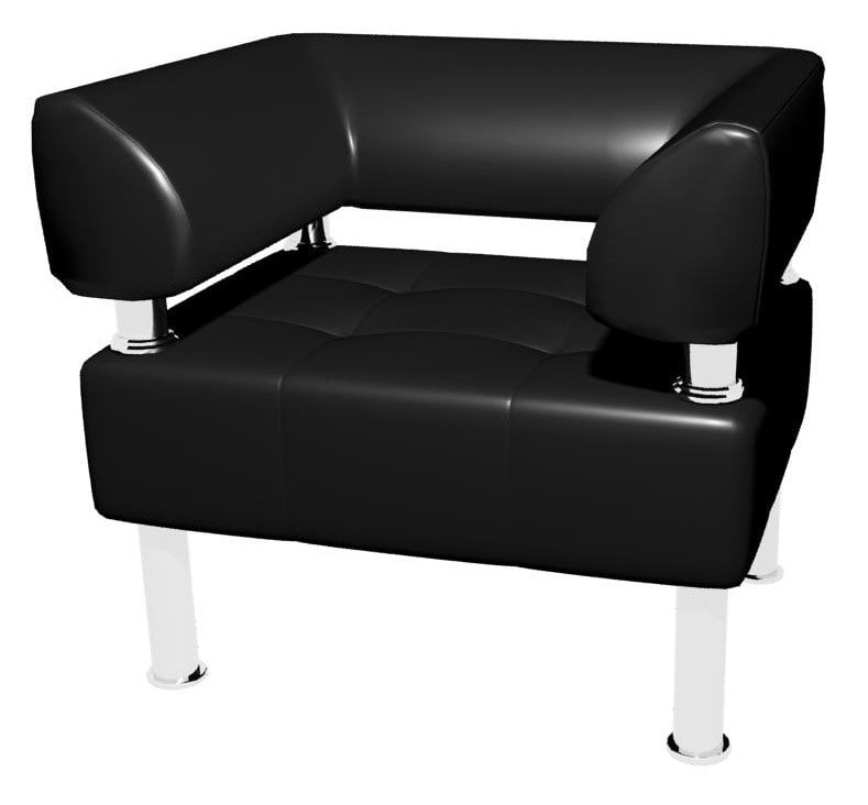 Мягкое офисное кресло-диванчик создано в практичном стиле с единой спинкой с подлокотниками, в материале кожзам - экокожа Родео или Флай, на хромированных прямых ножках (диаметр трубы 50 мм).