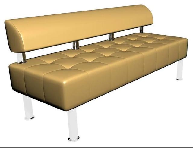 трехместный мягкий диванчик в кожзаме бедевого цвета, без подлокотников.