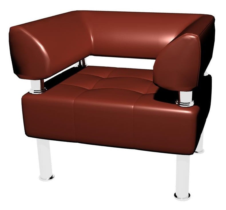 Мягкое офисное кресло-диванчик создано в практичном стиле с единой спинкой с подлокотниками, в материале кожзам - экокожа Родео или Флай, на хромированных прямых ножках (диаметр трубы 50 мм).
