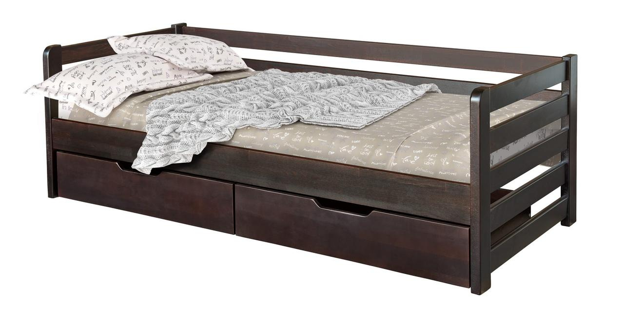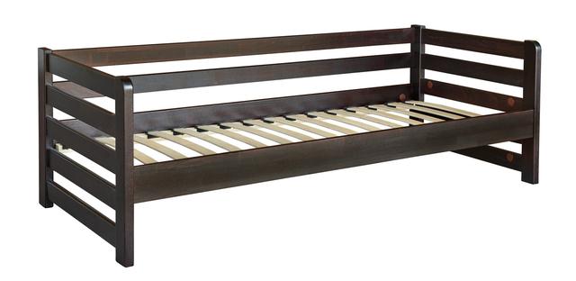 одноместная детская или подростковая кровать, деревянная из натурального бука в темном цвете "орех", спальное место 80х190 см на ортопедических деревянных ламелях.