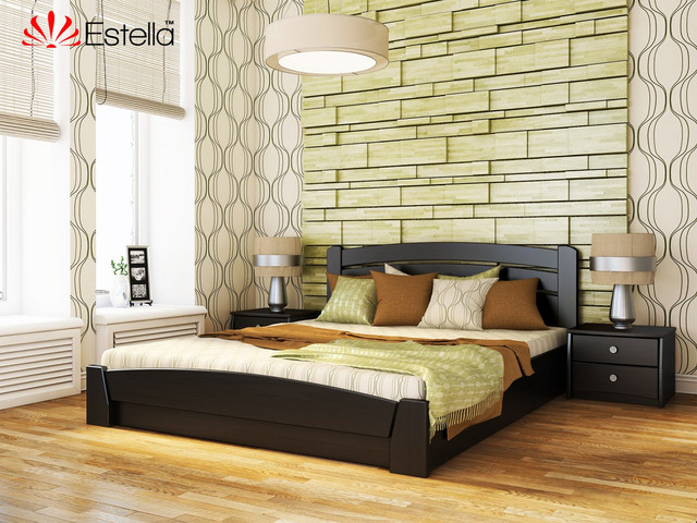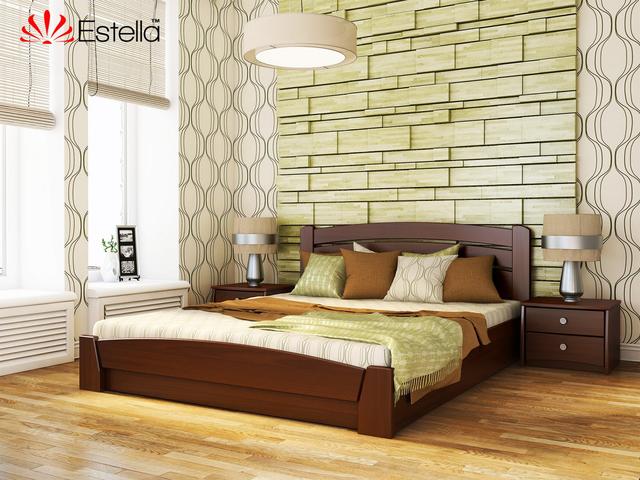Кровать Селена-Аури от фабрики "Эстелла" органично сочетается с прикроватными тумбами и комодом Вега.