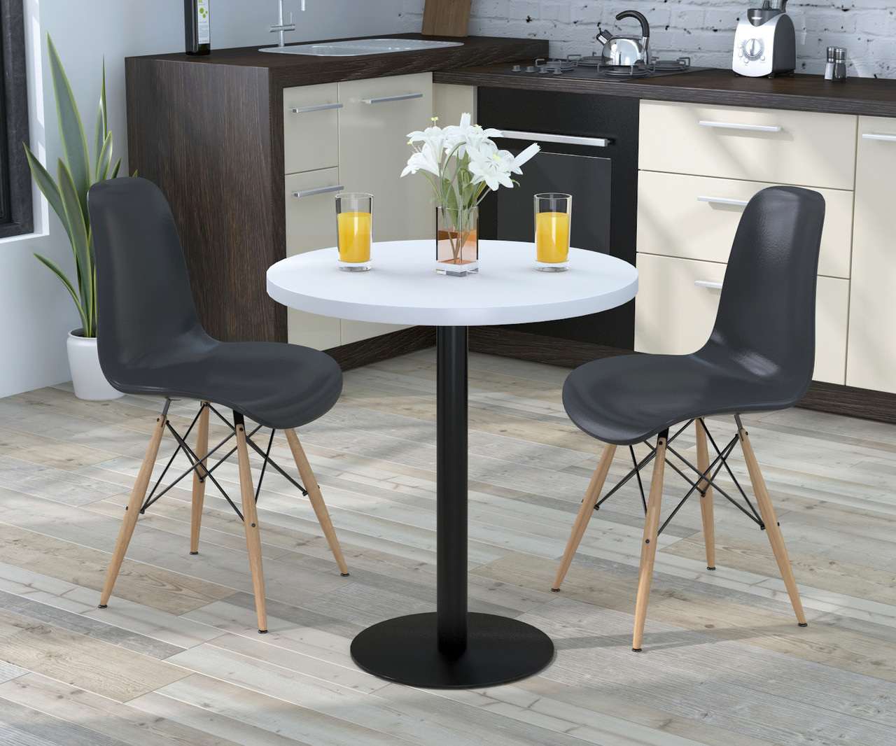 Стол обеденный BS-450 Loft-Design с круглой белой столешницей D-70 см