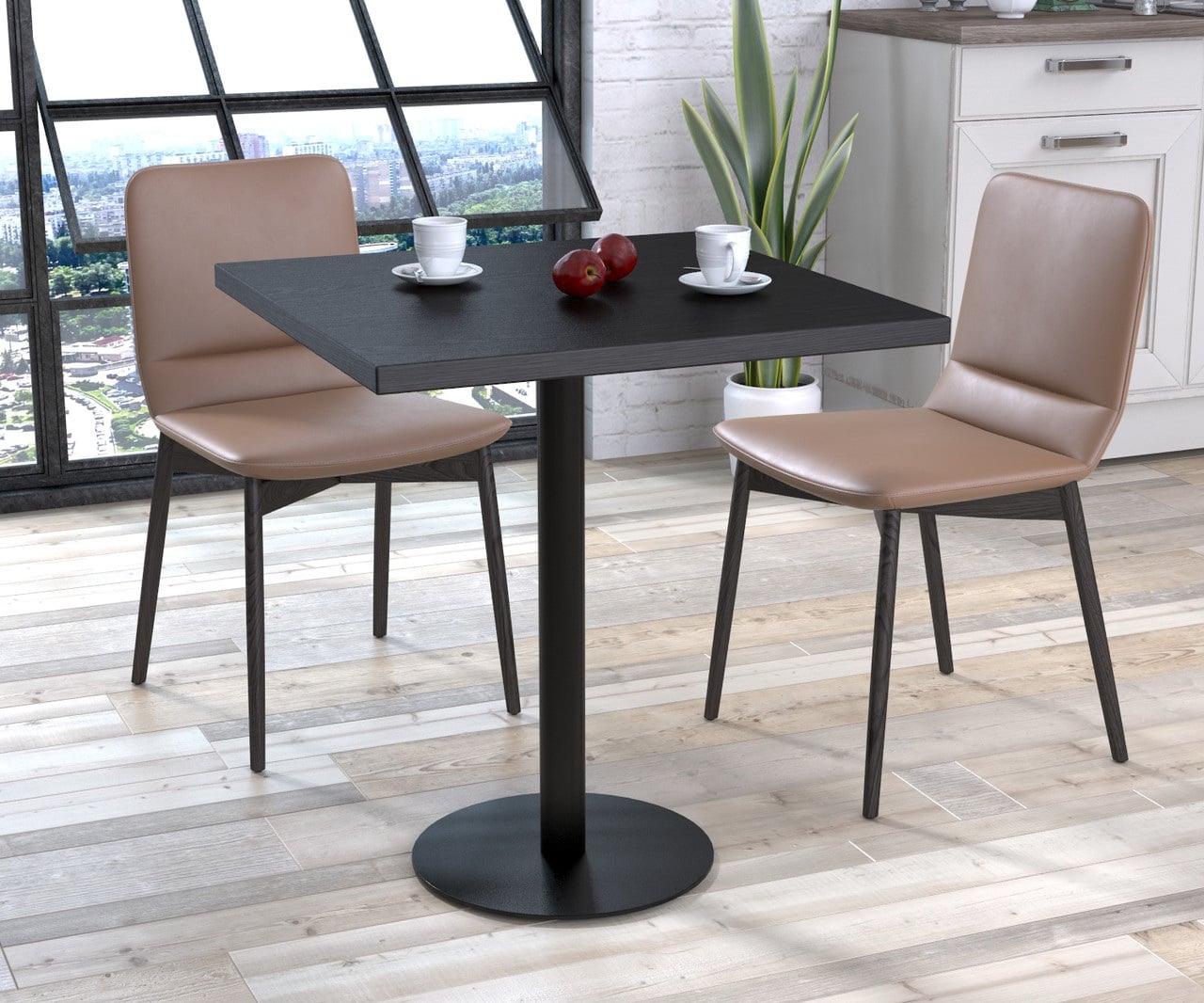 Стол обеденный BS-450 Loft-Design 70х70 см с одной ножкой с квадратной столешницей орех-модена коричневая