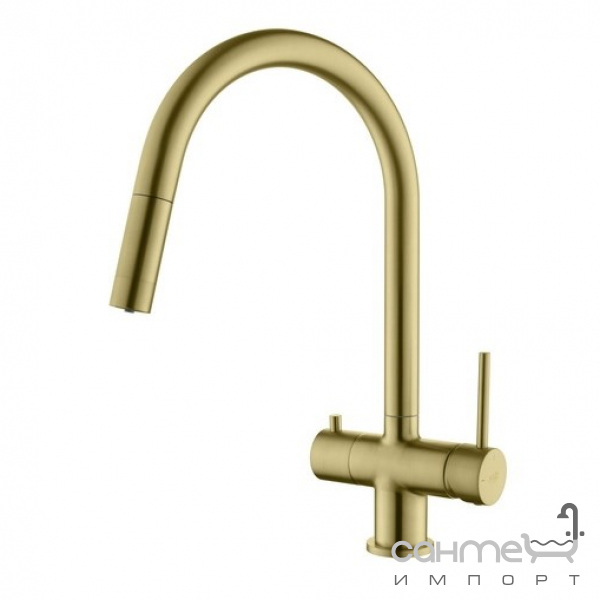 Смеситель для кухни с вытяжным изливом и изливом для фильтрованной воды Blue Water Apala Mosiadz Antyczny