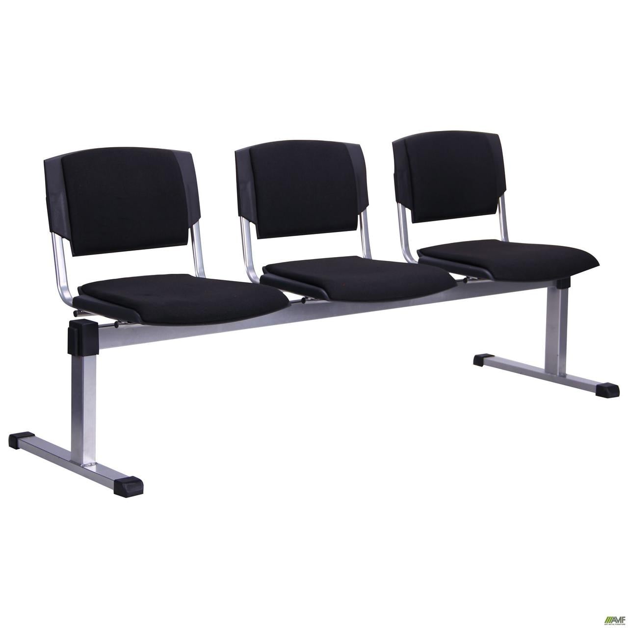 Секционные стулья AMF Призма-3 179 см алюм металкаркас сидение ткань черного цвета