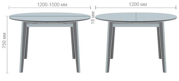 - Ширина столешницы: 1200 мм. Ширина столешницы в разложеном состоянии: 1500 мм