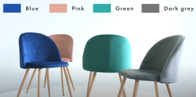 Материал обивки: ткань велюр в четырех вариантах цвета - темно-серый (dark grey velvet) или розовый, синий или зеленый.