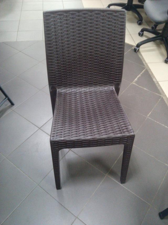Это стильный и удобный пластмассовый стул, дизайн плетения повторяется и на устойчивых ножках стула - модель легкая и долговечная.