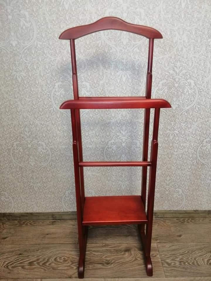 Переносные напольные конструкции для одежды изготавливаются из массива ольхи, лакировка - полиуретановый лак.