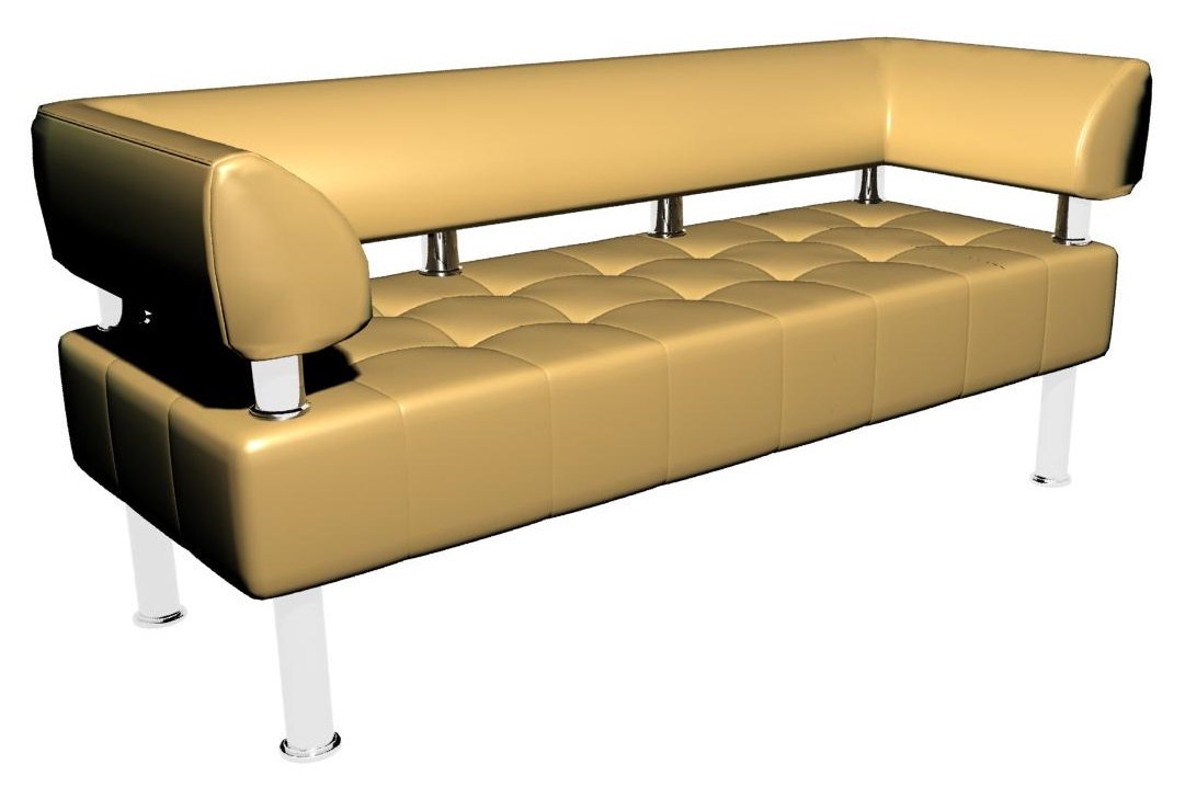 Диван-Офис – самодостаточная модель, лишенная вычурности и броских элементов, благодаря чему прекрасно подойдет и для офисного помещения и для комнаты ожиданий, холла, вестибюля. Массивная основа установлена на невысокие хромированные ножки диаметром 50 мм, которые удачно подчеркивают формы изделия, а подлокотники значительно улучшают комфортабельность общей конструкции.