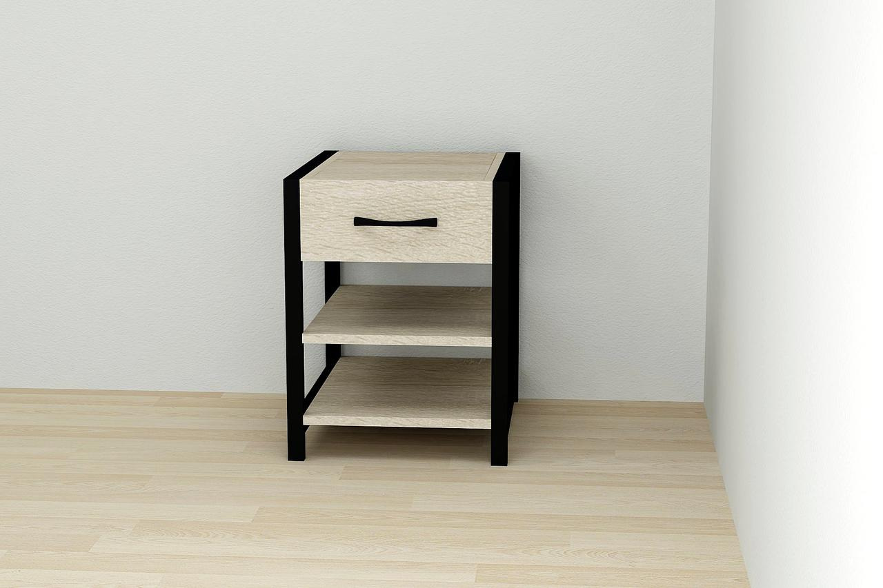 Розміри: висота – 50 см, довжина – 41 см, ширина – 40 см. Товщина стільниці – 16мм. Колір металу – чорний. Колір ДСП Дуб Сонома.