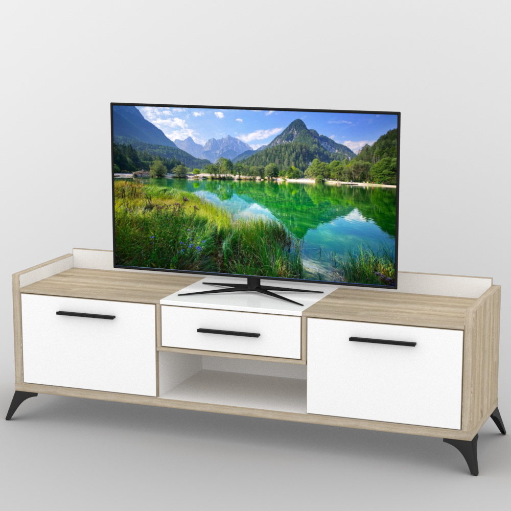 Тумба под телевизор Тиса Мебель ТВ-384 Дуб сонмоа Белый