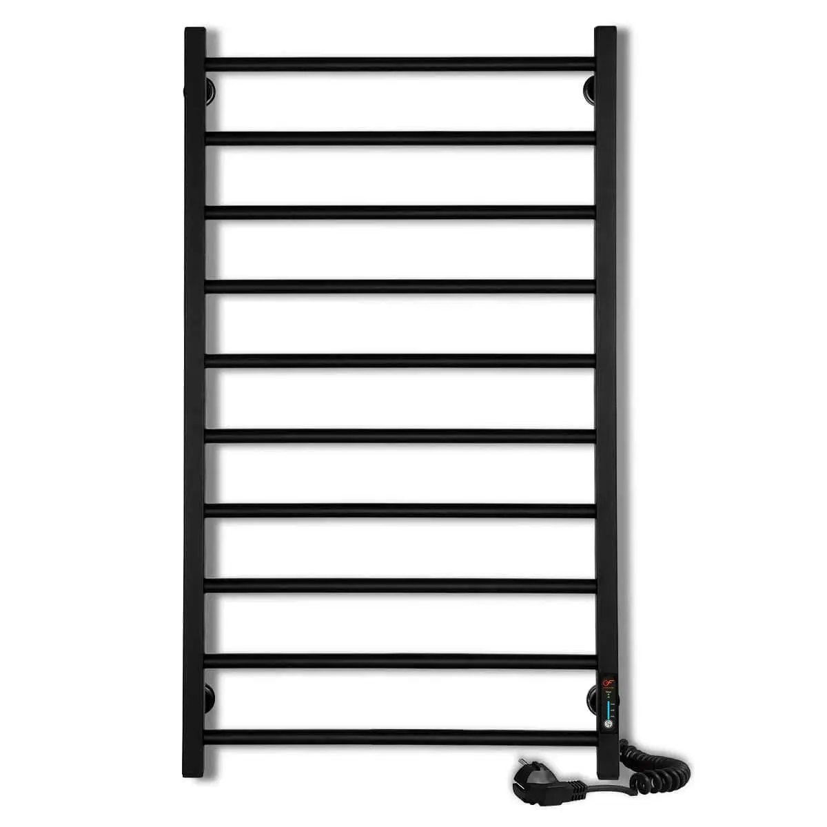 Электрическое полотенцесушитель Flyme Black EF 10L - устройство со встроенным в стойку термоконтроллером, имеющее функцию таймера. Имеет небольшую мощность 215 Ватт, что вполне достаточно для качественной сушки полотенец. На 10 горизонтальных перекладинах можно сушить не только полотенца, но и мелкое белье. Такой конструктив обеспечивает равномерный прогрев полотенец по всей их длине.