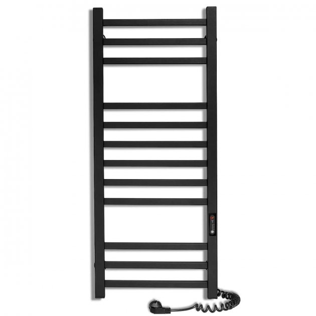 Изготовлено электрополотенцесушитель из высококачественной стали и покрыт черной порошковой краской с глянцевым эффектом. Для удобства, электрическое полотенцесушитель оснащено 8-ми горизонтальными перекладинами и встроенным в стойку - терморегулятором с таймером. Благодаря простому, лаконичному дизайну – электрическое полотенцесушитель отлично подойдет для любого интерьера и станет стильным и полезным девайсом для Вашей ванной комнаты.