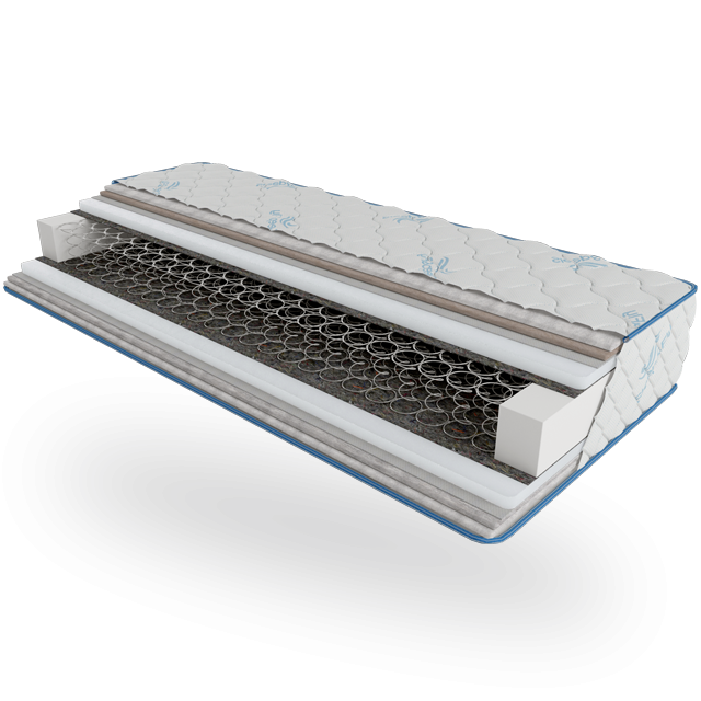 Матрас Standart Plus изготовлен с использованием зависимого двухконусного пружинного блока Multi Bonnel, где все пружины соединены между собой спиралью. Он имеет длительный срок эксплуатации. При возрастающей нагрузке на пружину возрастает противодействие сжатию.