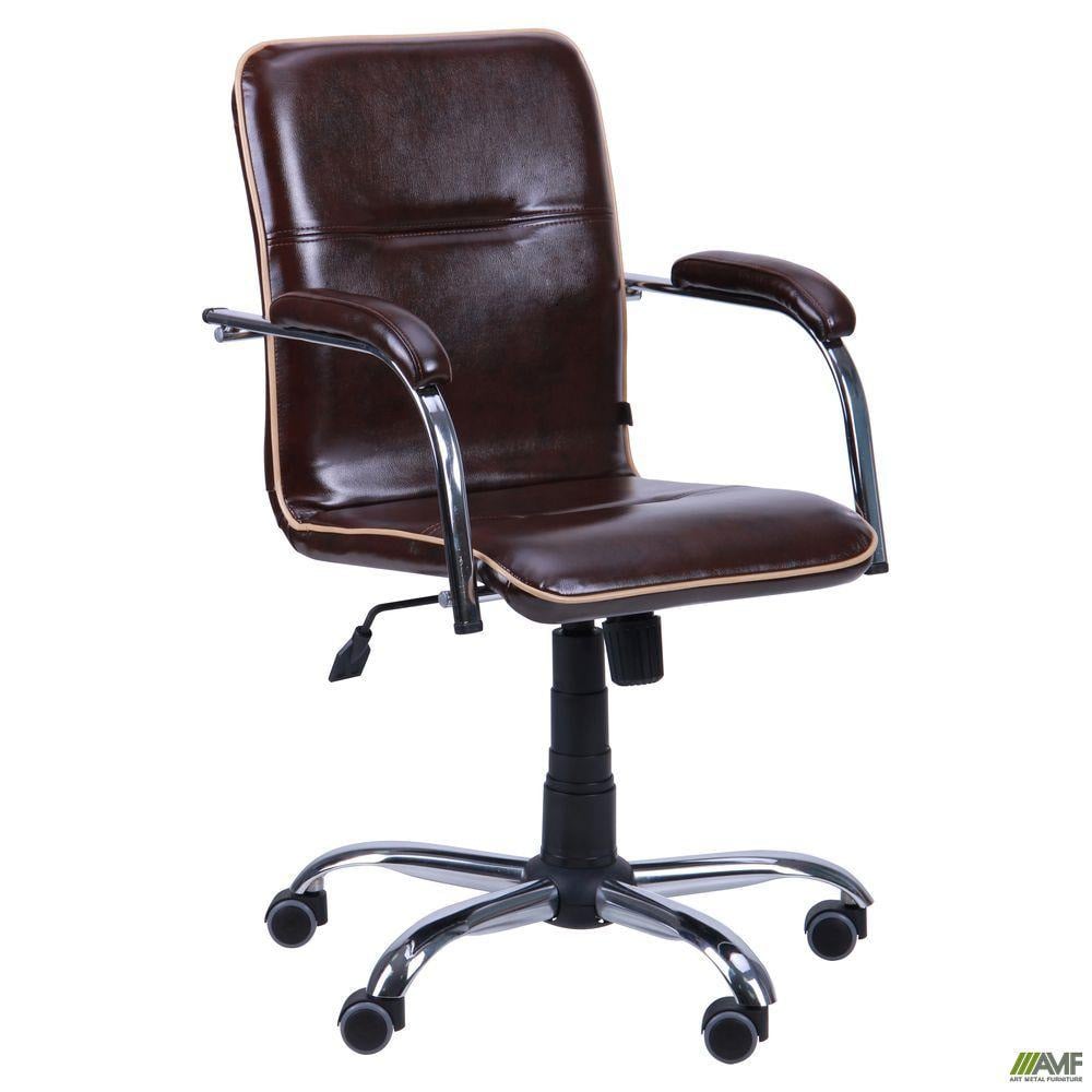 Офисное кресло АМФ Самба-RC Хром Софт коричневое с кантом