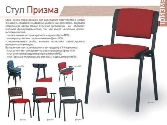 Стульчики Призма предназначены для размещения посетителей в залах, в офисе, модель обладает хорошей эргономикой и большой функциональностью - т.к. имеет несколько дополнительных опций: