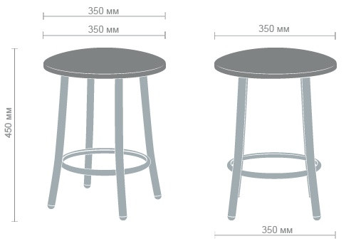Сидушка - из кожзама (винилискожа) черного цвета. Ножки - металлические, усиленные внизу ободом.