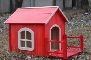Будка для не больших пород собак с окошком из натурального дерева.