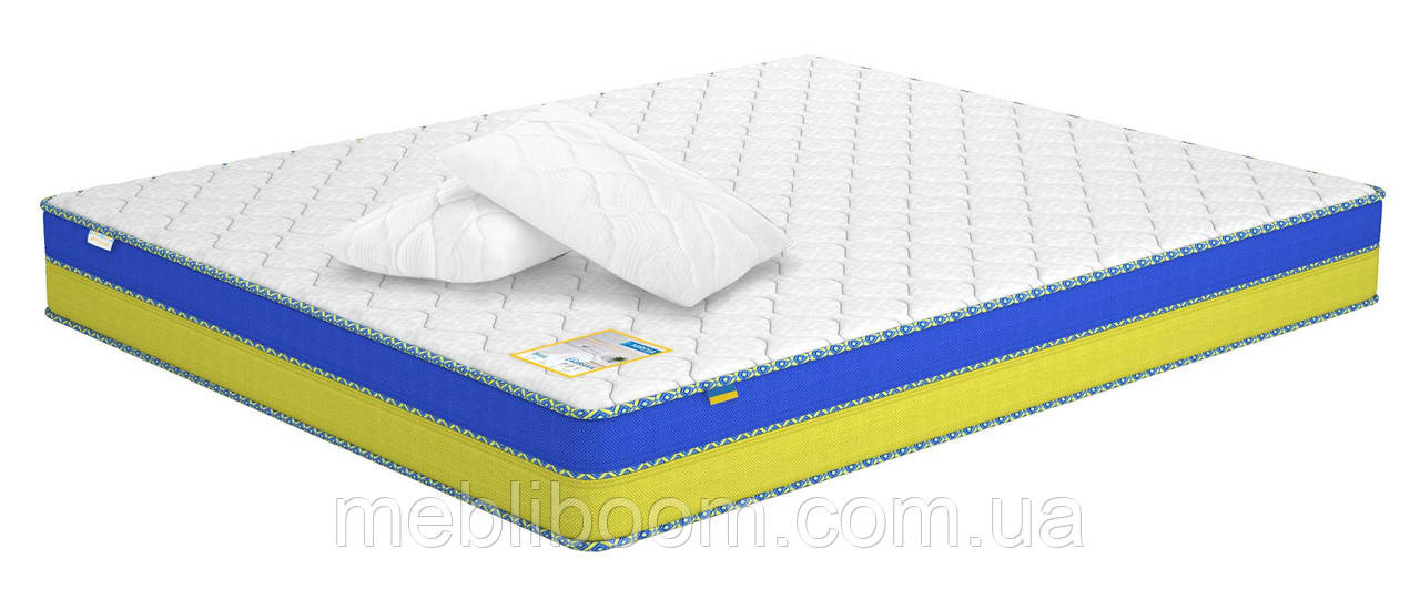 Матрац Заграва від Matroluxe — двостороння пружинна модель, яка володіє різнобічною жорсткістю. Вона чудово підходить для енергійних людей, які ведуть активний спосіб життя. Виріб виконаний у патріотичному дизайні, який символізує силу та впевненість нації.