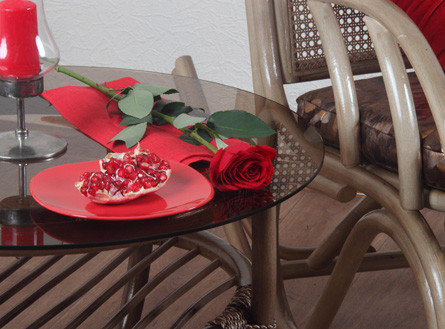 Например, ротанг хорошо сочетается со столиками из стекла или металла.