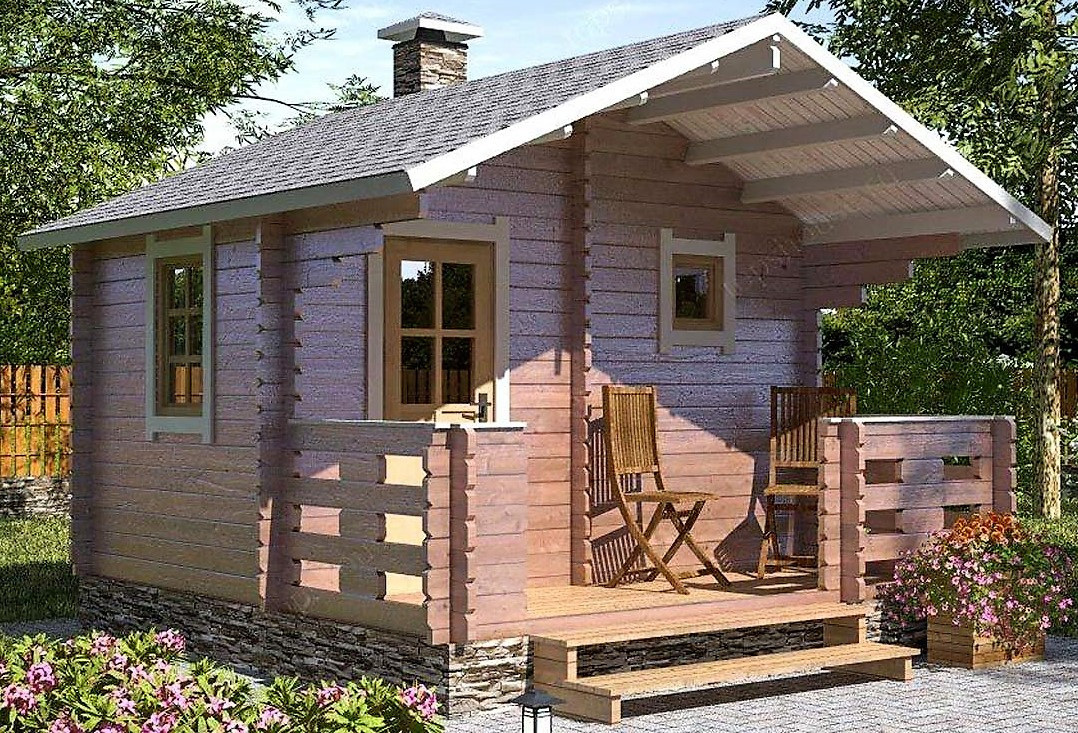 Баня деревянная из профилированного бруса с верандой 4,4х4,4