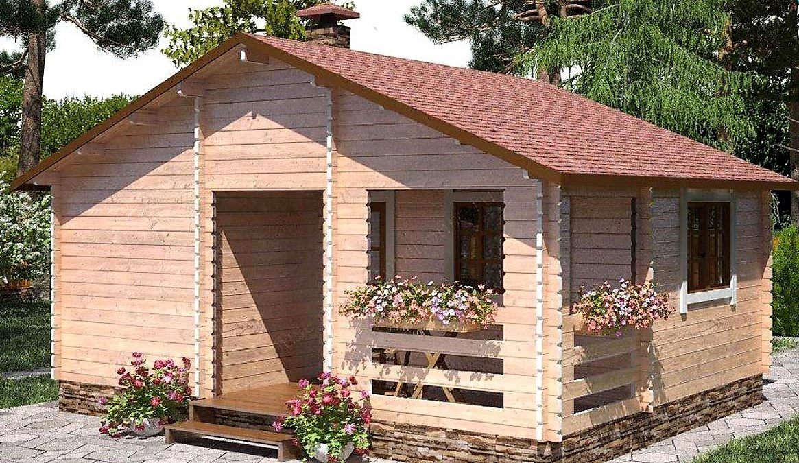 Баня деревянная из профилированного бруса с верандой 6х6.5