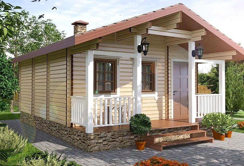 Баня деревянная из профилированного бруса с верандой 6х6.5