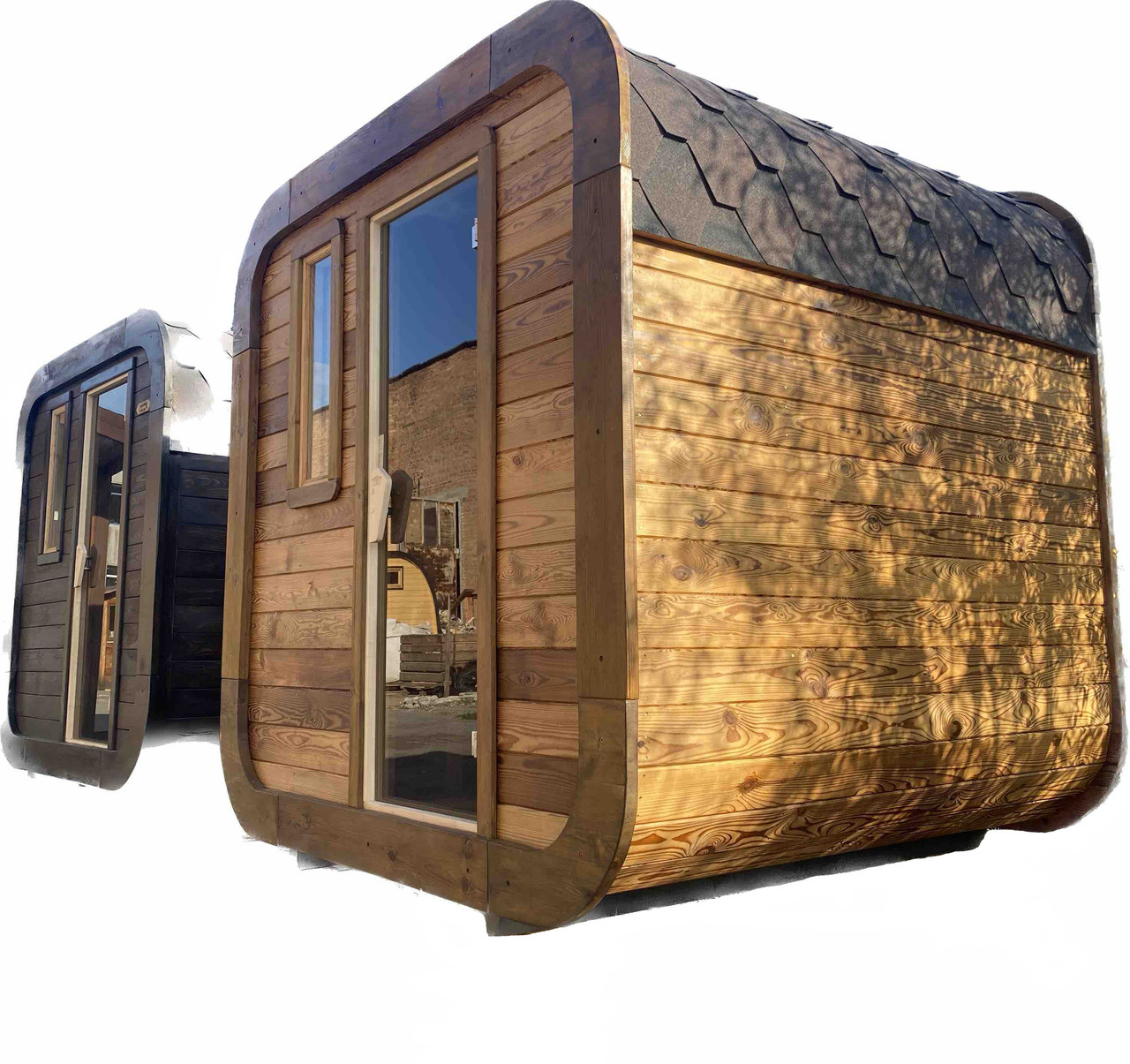 ✅ Цена баня бочка Украина указана квадро-баню в стиле Cube из профилированного бруса толщиной 45 мм.