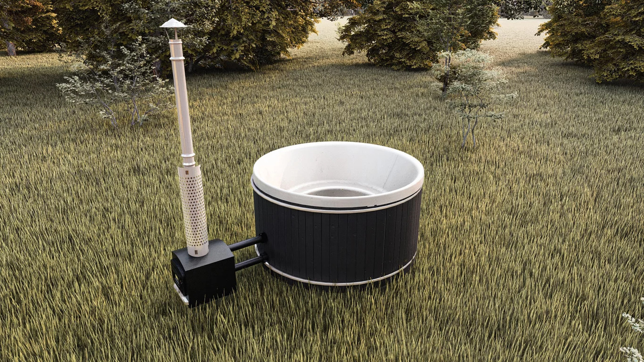 Бочка купель на дровах "Карпатская" деревянная для бани с внешней дровяной печкой