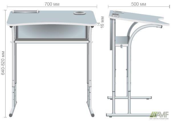 Особенность парт для школьников от украинской фабрики "АМФ" - яркий дизайн, прочный каркас, удобная ровная полочка под столешницей, крючок для портфеля, встроенный стаканчик для ручек, пенал для других канцелярских принадлежностей.