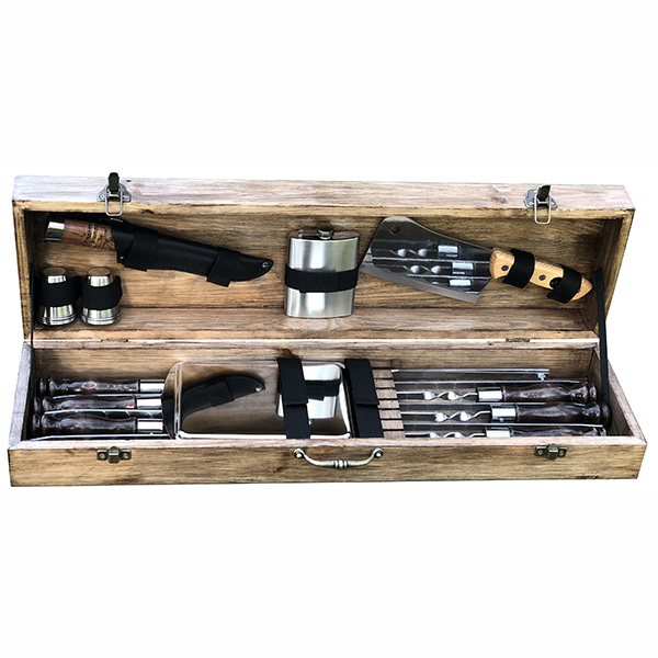Набор шампуров ручной работы с деревянной ручкой, в коробке из натурального дерева.