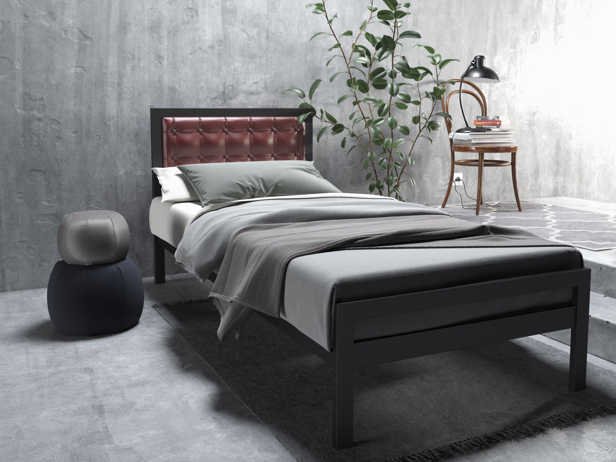 Металлическая кровать Герань мини Tenero черный бархат/коричневый 900х1900