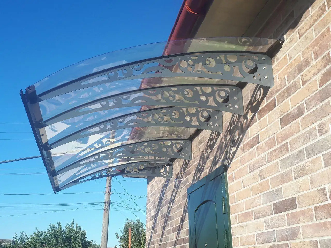 Изготовлен из высококачественного поликарбоната, этот навес является прочным и устойчивым к ультрафиолетовым лучам, что обеспечивает длительный срок службы без выгорания или повреждений. Поликарбонат также имеет высокую прозрачность, позволяя достаточно естественного света проникать к входу.