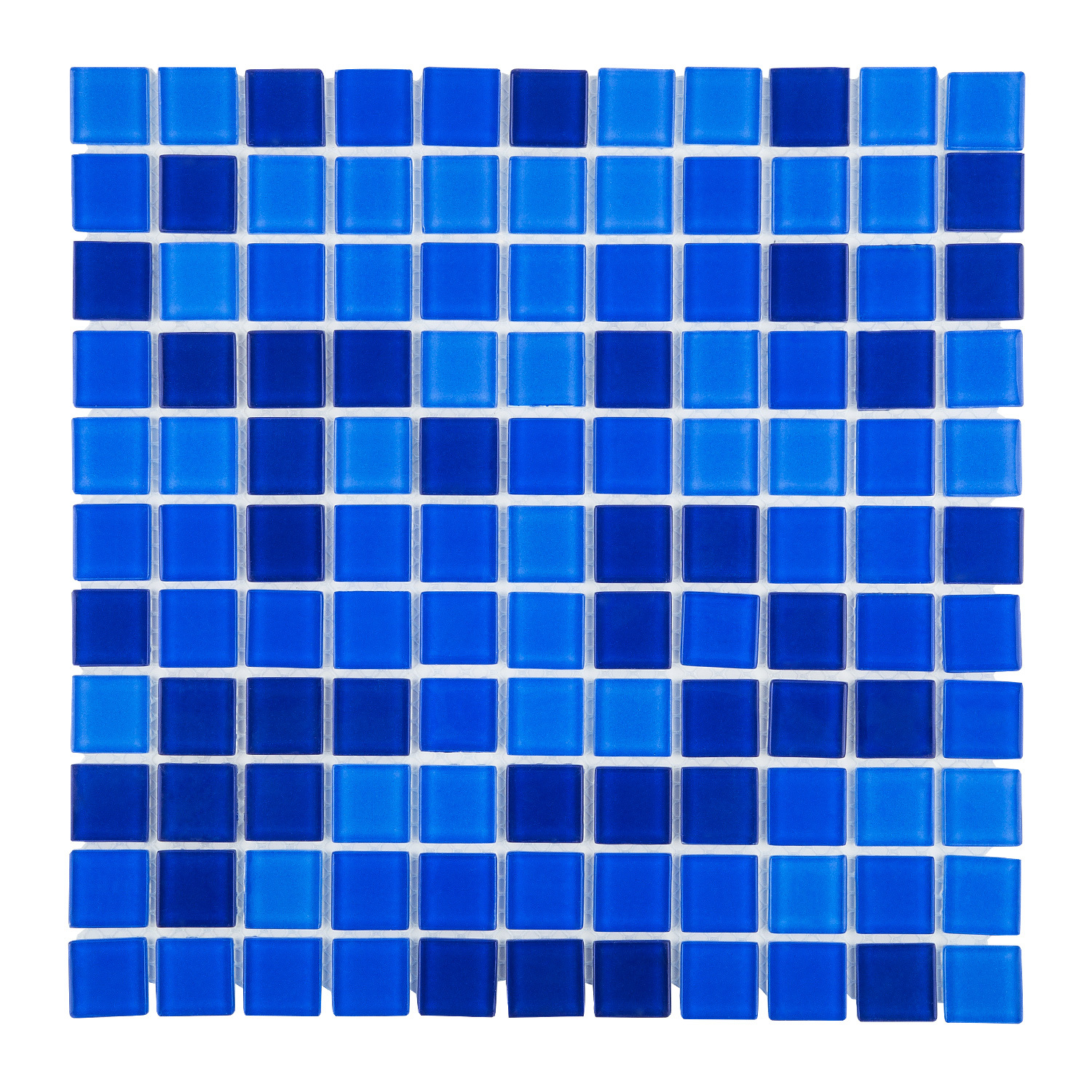 . Размер листа: 300x300 ммРазмер мозаики: 25x25x4 ммОснование листа: сеткаЦвет: светло-голубой, темно-голубой, синий