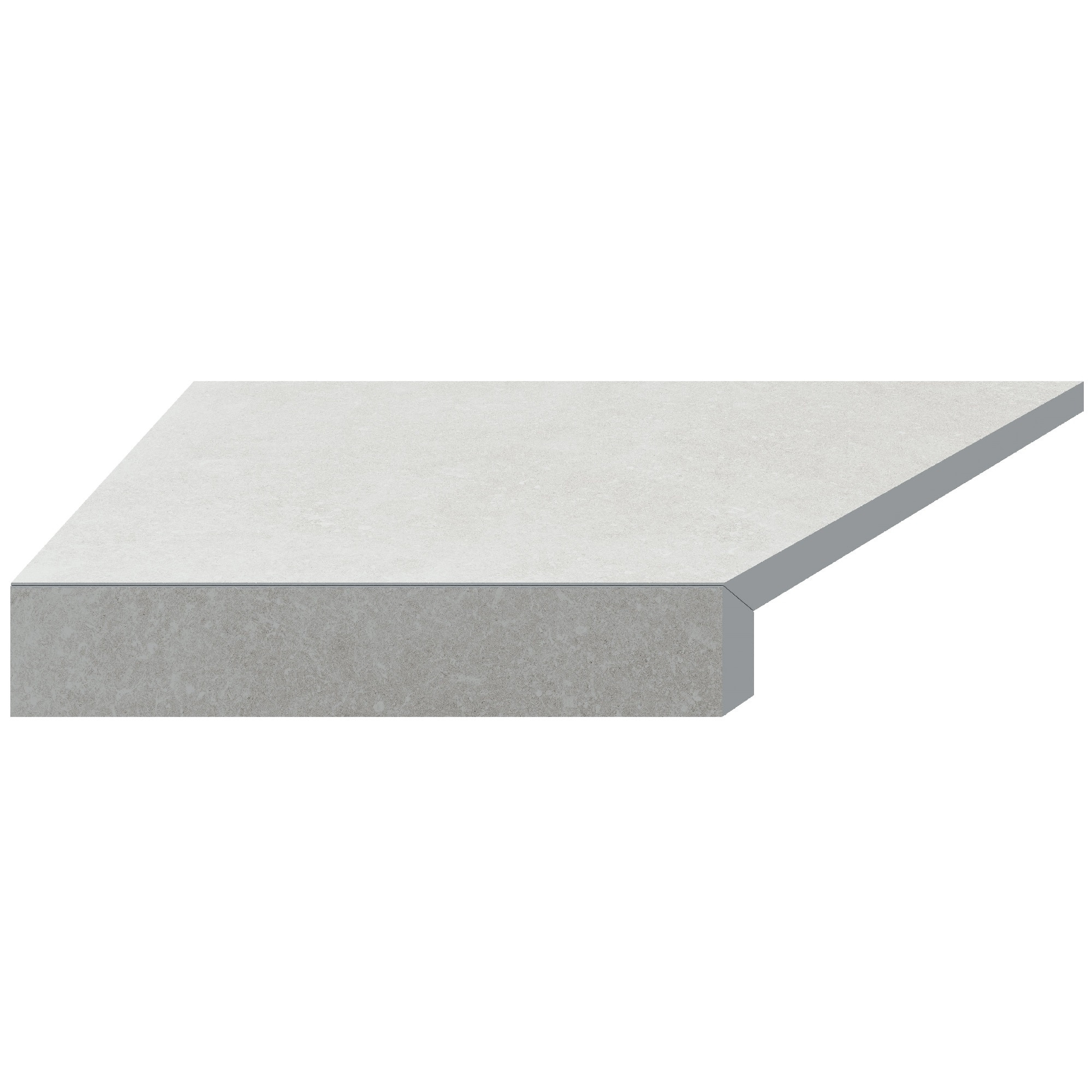 Описание Aquaviva Угловой Г-образный элемент бортовой плитки Aquaviva Granito Light Gray, 595x345x50(20) мм (левый/45°)