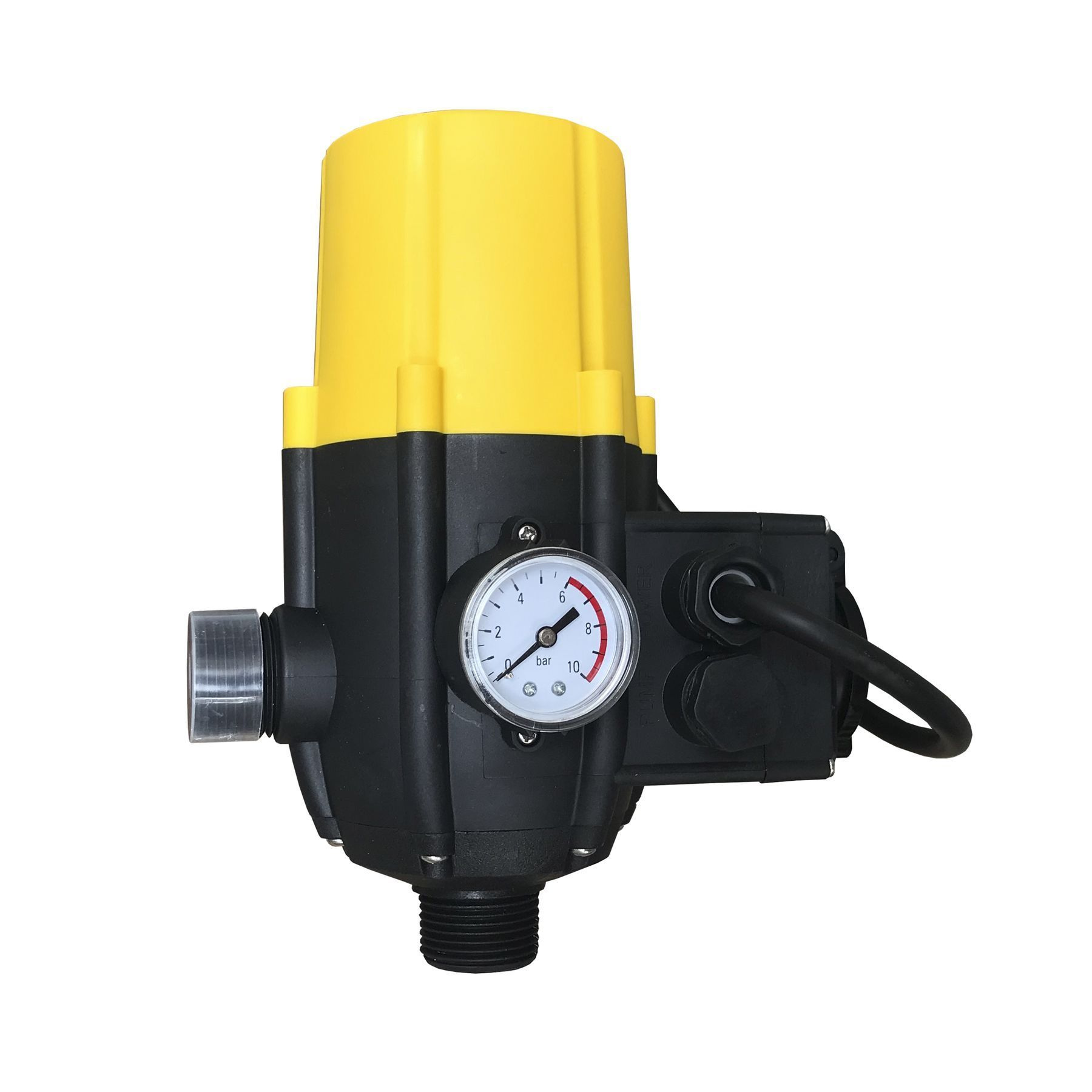 Устройство включает насос при падении давления до 1,5 бар и выключает при протоке воды через устройство менее 0,6 л /мин.