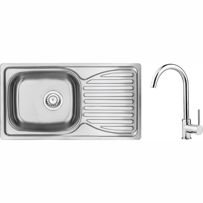 Высокопрочная нержавеющая сталь. Раковина оснащена арматурой для подключения к посудомоечной машине. Естественные антисептические свойства стали. Реверсивная мойка - возможность установки чаши слева или справа Тип монтажа: врезная Форма: прямоугольная Основных чаш: 1 шт Расположение чаши: реверсивная Сушка посуды (крыло): 1 Поверхность мойки: сатин Минимальная ширина шкафа (базы): 500 мм Размеры мойки: 430х780х160 Глубина раковины: 160 мм Длина выреза: 760 мм Ширина выреза: 410 мм Цвет: нержавеющая сталь Особенности: реверсивная (возможность установки чаши с левой или правой стороны), возможность подключения к посудомоечной машине, нержавеющая сталь высокой прочности, природные антисептические свойства стали Вид: однорычажный Цвет: Хром Класс шума: II (20 до x ≤ 30) Диаметр картриджа: 35 мм Тип зливу: поворотный Диапазон излива смесителя: 180 мм Тип аэратора: сотовый Размер аэратора: M22 Длина соединительных шлангов: 350 мм Монтажная резьба: 3/8\"
